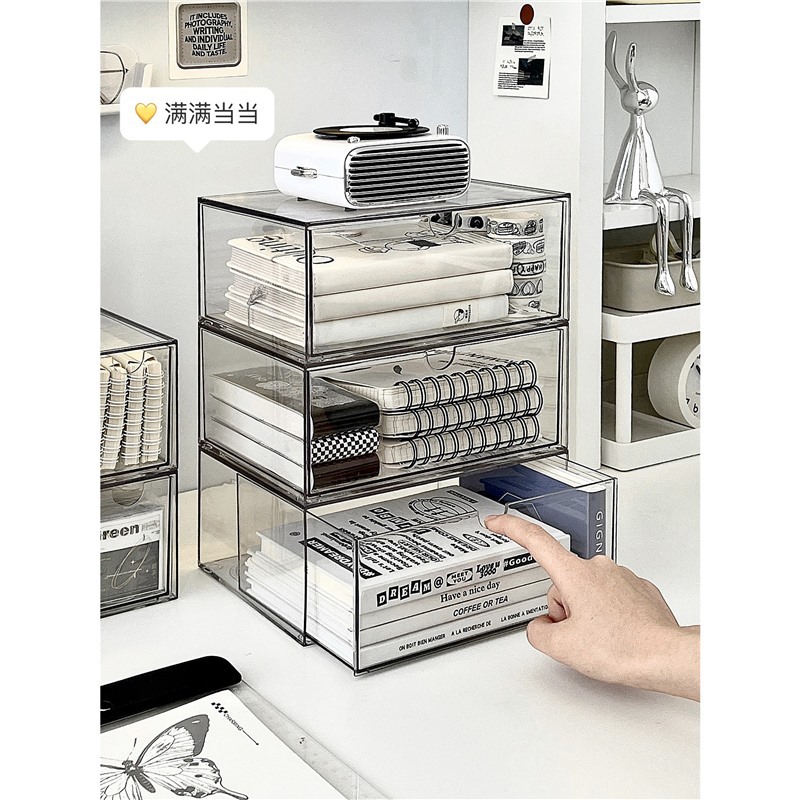 デスクトップ引き出し式収納ボックス透明アクリル文房具雑物箱デスク化粧品マスク棚