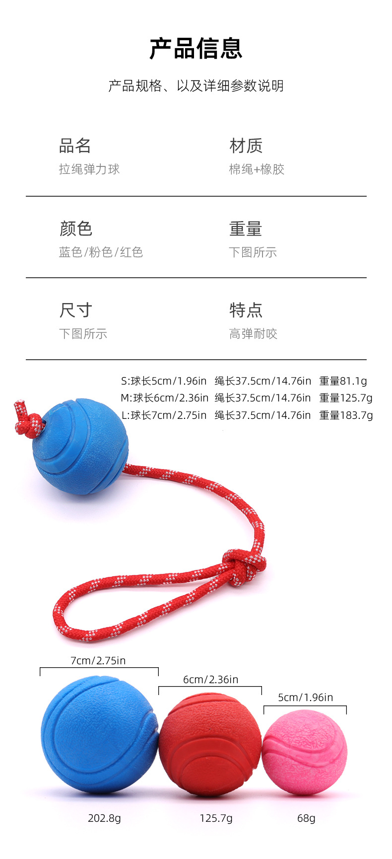仕様 Sサイズ:直径約47.8mm、重さ約67.2g,Mサイズ:直径約58.4mm、重さ約116g,Lサイズ:直径約68.1mm、重さ約202.5g,紐付きSサイズ:直径約47.8mm、重さ約80g,中サイズの紐:直径約58.4mm、重さ約140g,ロープ付きのLサイズ:直径約68.4mm、重さ約200グラム