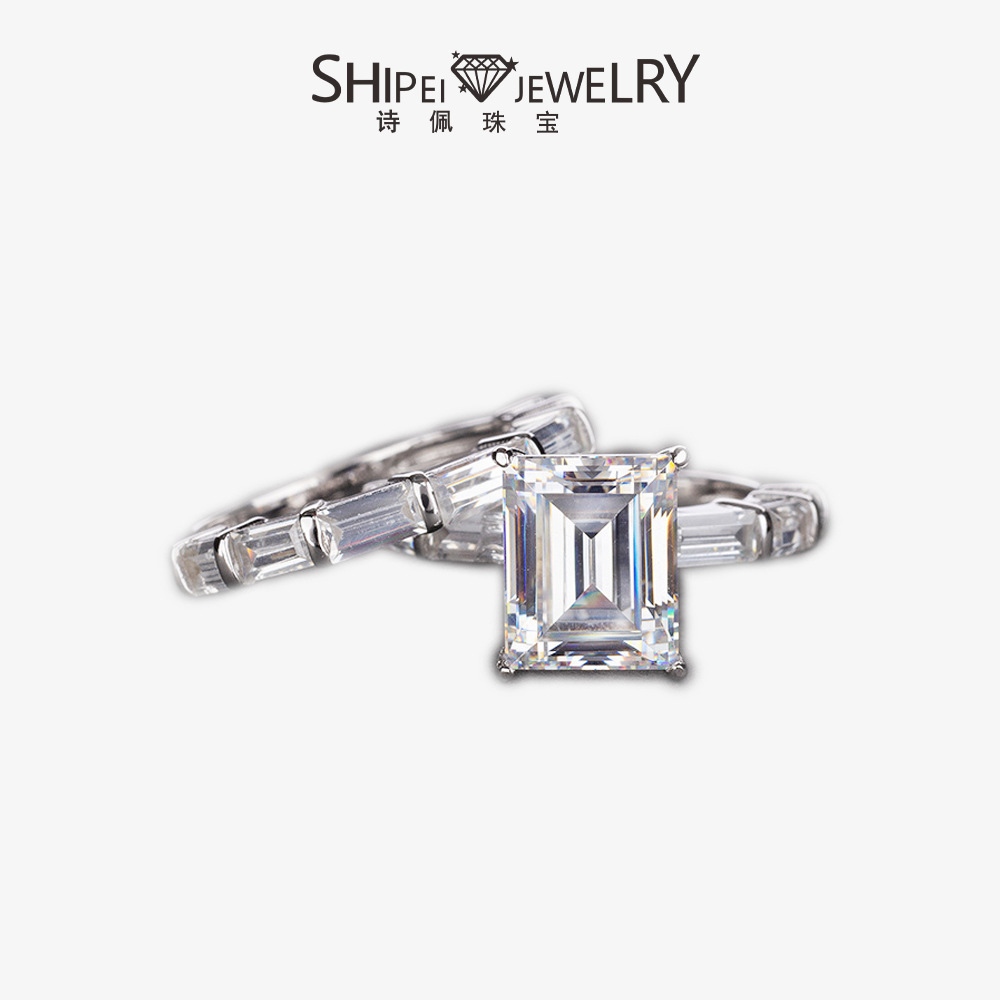 詩佩宝飾品s925純銀4カラット長方形8*10ドリルリングの組み合わせセットリング結婚式の女性リングの代理