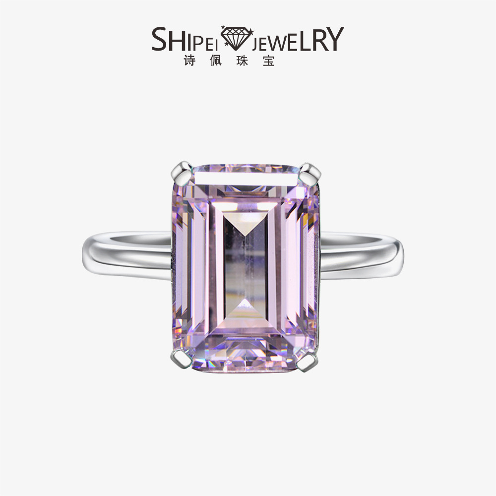 詩佩ジュエリー2025新作8カラットエメラルドカット10*14シンプルで上品なウェディングS925シルバーリング