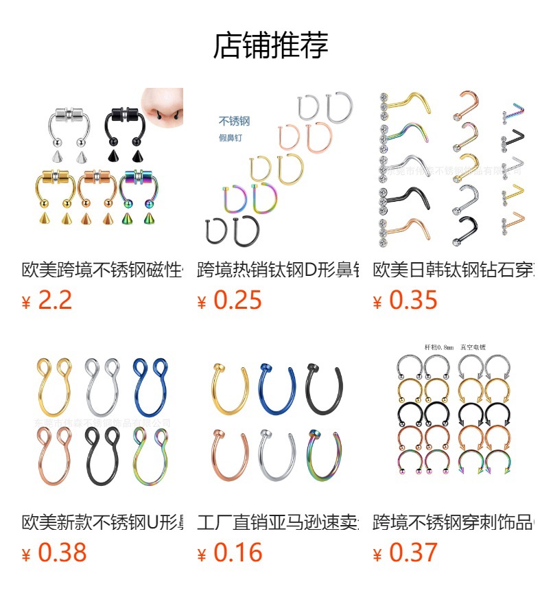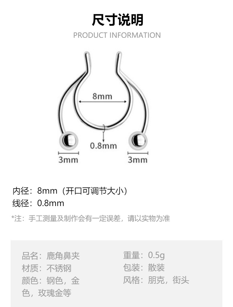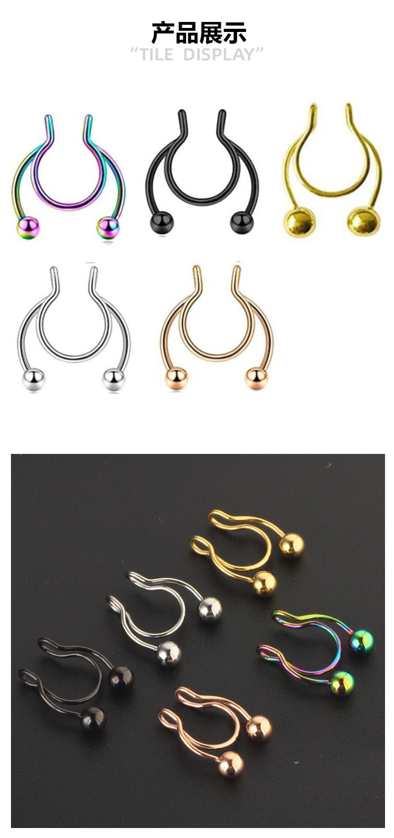 国境を越えたアマゾンのソースステンレス溶接ボール溶接先鹿角鼻クリップ鼻リングの中でu型鼻リング穿刺アクセサリー
