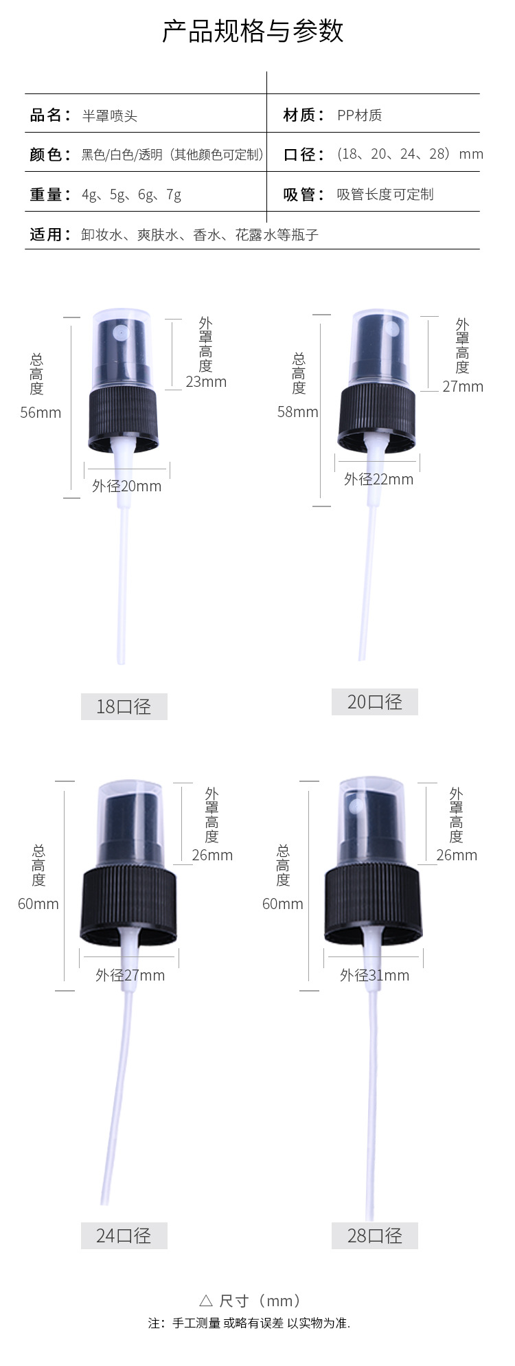 18歯20歯24歯28歯半カバーノズル側噴細霧香水スプレーヘッドppプラスチックスプレー現物