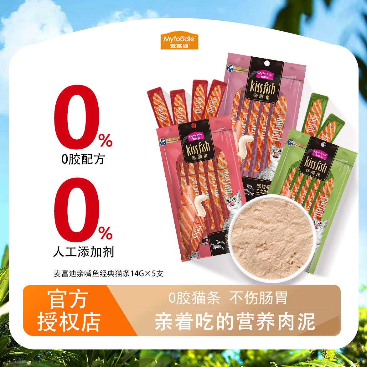 麦富迪猫間食鶏肉サーモンマグロ猫缶詰湿食糧猫プリン14g * 5支流質猫条