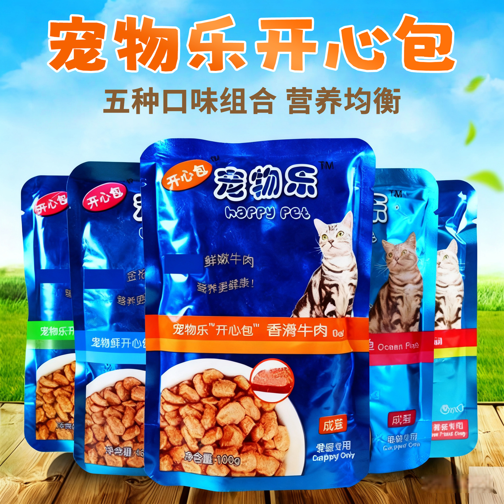 ペット楽しいバッグ猫缶詰猫湿食糧牛肉味魚味100g * 12バッグ5種類の味