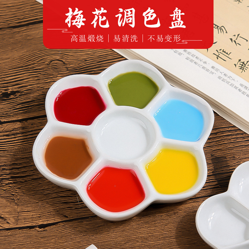 景徳鎮陶磁器のパレット梅の花の絵の具の皿の水の粉の水彩の書画の調色の美術用品