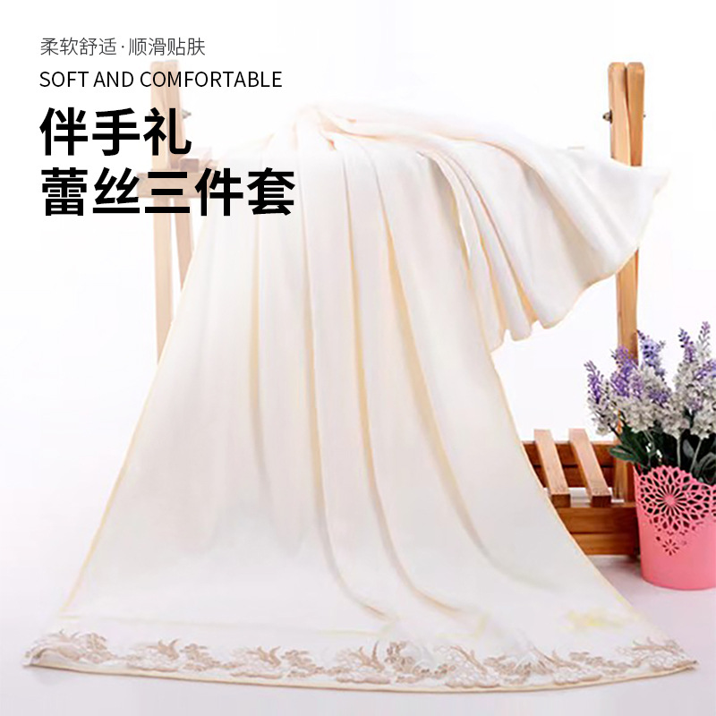 無地レースの縁の3つのセットの柔らかい吸水の刺繍の字の贈り物のタオルの広告は刺繍のロゴの卸売りのバスタオルを販売します。