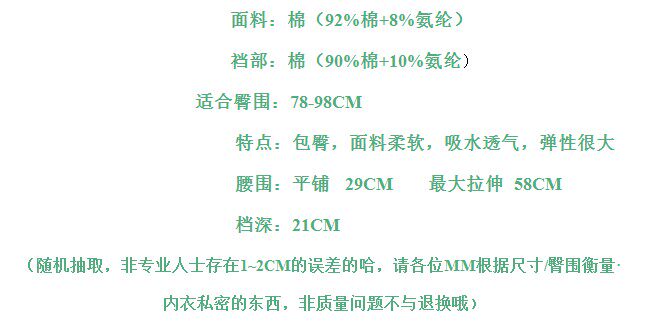 【80-125】2303 かわいいプリント # 綿糸生地バッグヒップかわいいローウエスト女性下着