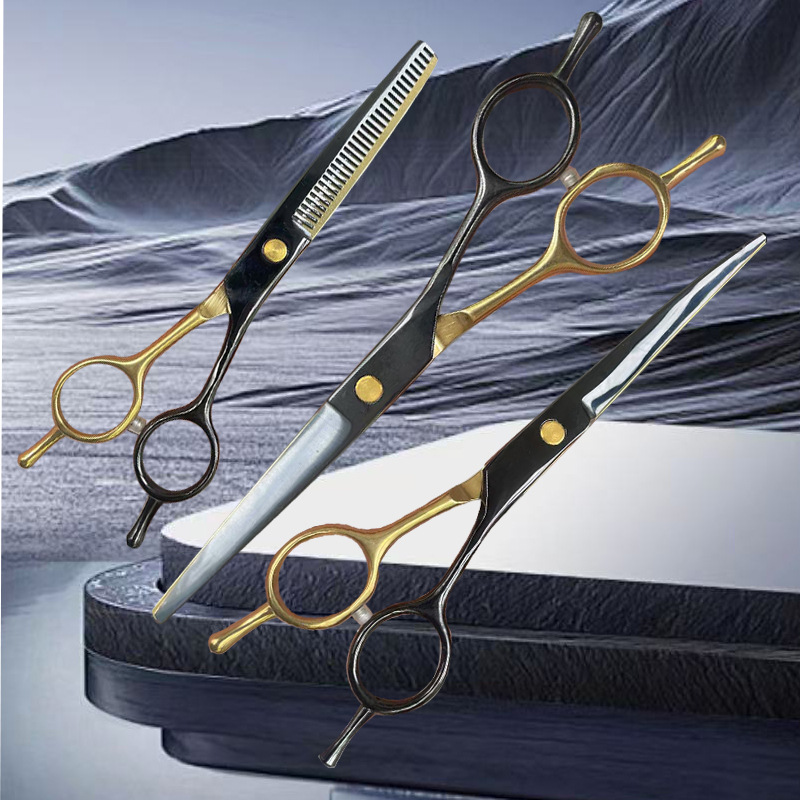 メーカー卸売り斜尾黒金理髪ハサミ美容ハサミペットハサミ劉海ハサミ平ハサミセット