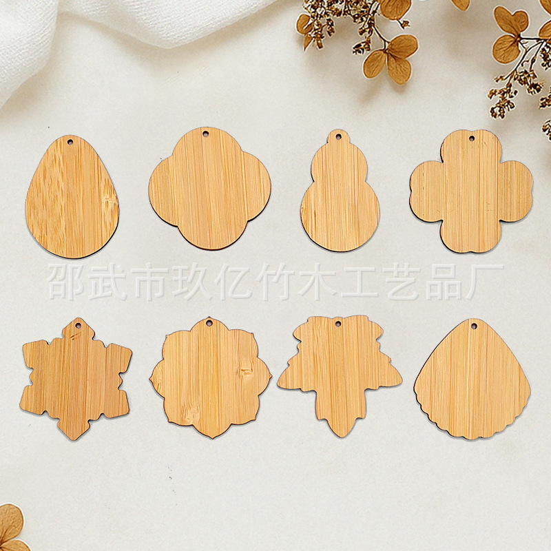 竹制风摆挂饰竹片贝壳四叶草造型空白竹板手工DIY挂件掉吊牌材料