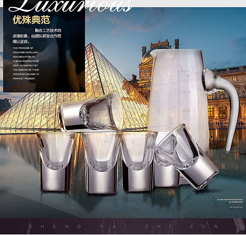 卸売り代理は金山藍山金箔分酒器家庭用酒器水晶ガラス付きの目盛り付き白酒壺です。