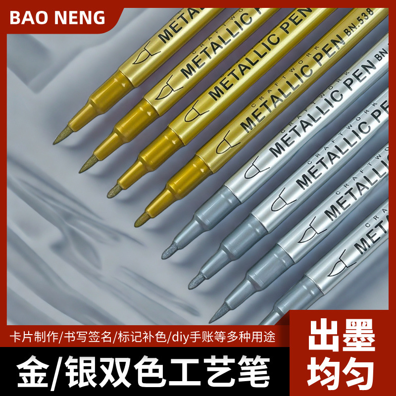 金属工艺笔油性防水不掉色艺术签名画画涂鸦金银双色贺卡绘画笔