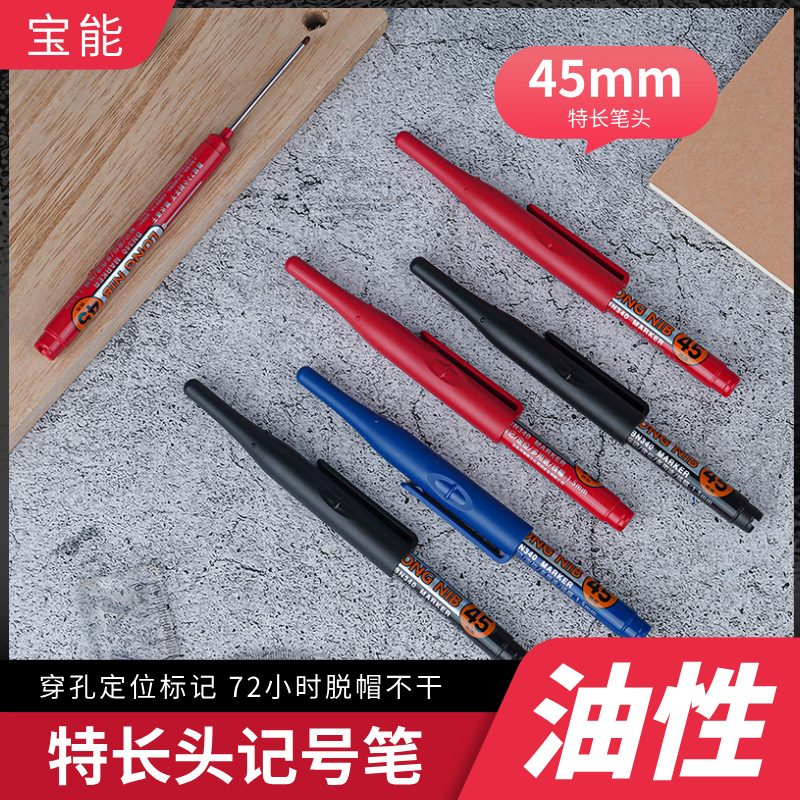 多用途特长45mm油性木工长头记号笔防水耐擦黑色深孔划线细加长