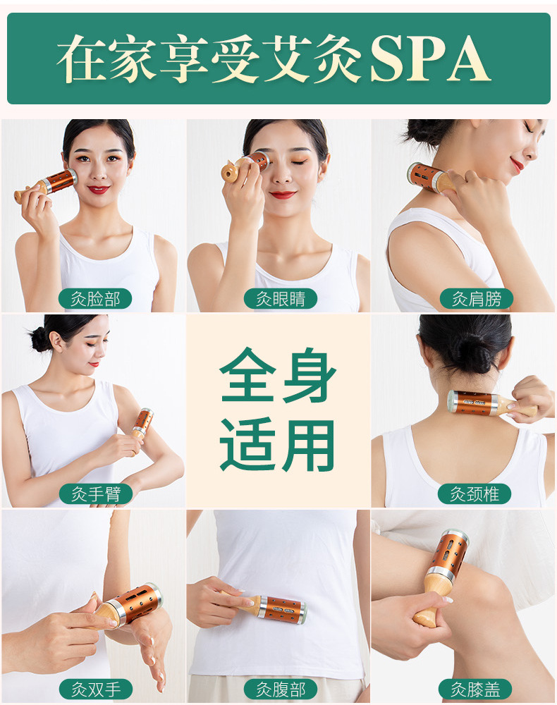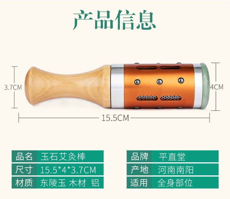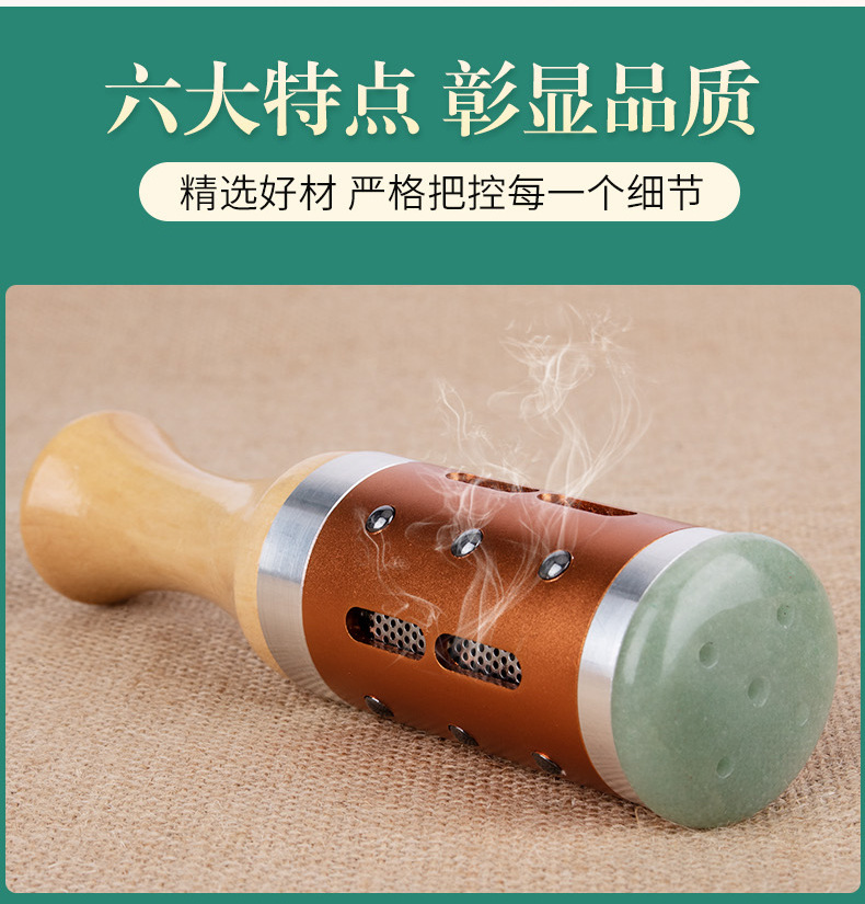 Pingzhitang 翡翠ローラー手持ち灸スティックフェイシャルポータブル灸美容院灸器具コラムマッサージスティック