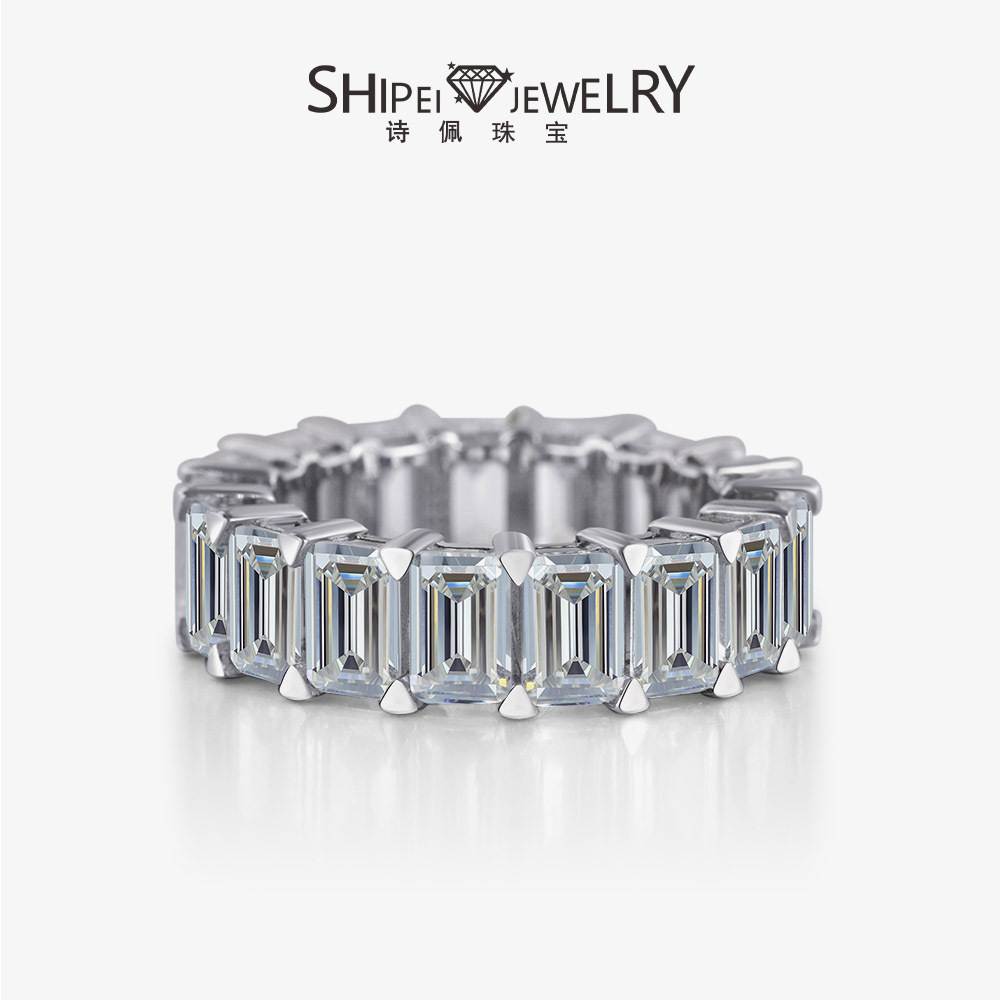 詩佩ジュエリー欧米熱売925銀4ct高炭素ドリル8*11長方形祖母緑カット指輪女性シンプル