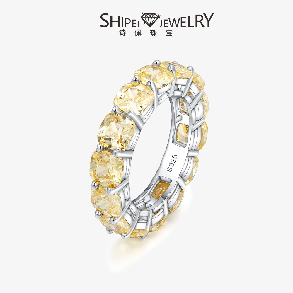 詩佩宝珠2新型欧米豪華排戒925銀0.75ct肥方5*5ガチョウ黄色シンプル女性指輪