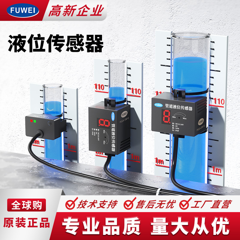 非接触式电容式液位传感器产品概述适用管道外径6-26mm,多规格可选电容式原理,不易受管道材质影响两路输出:NPN+PNP液位控制精度高,重复精度小于5%数码显示屏,灵敏度数值显示,可视化操作可穿透材料类型:PVC管,陶瓷管,胶管,PE管透明管,半透明管