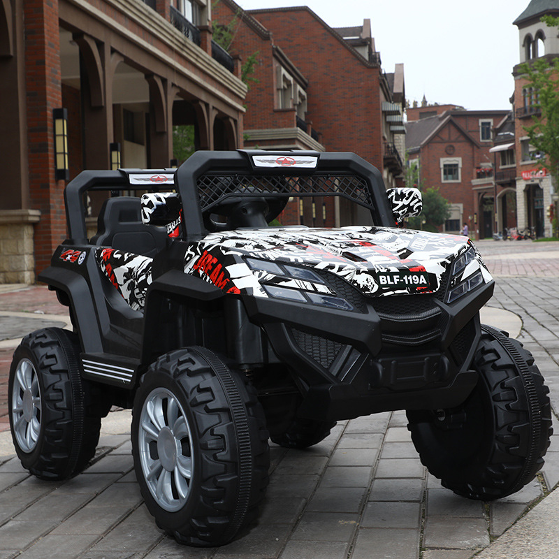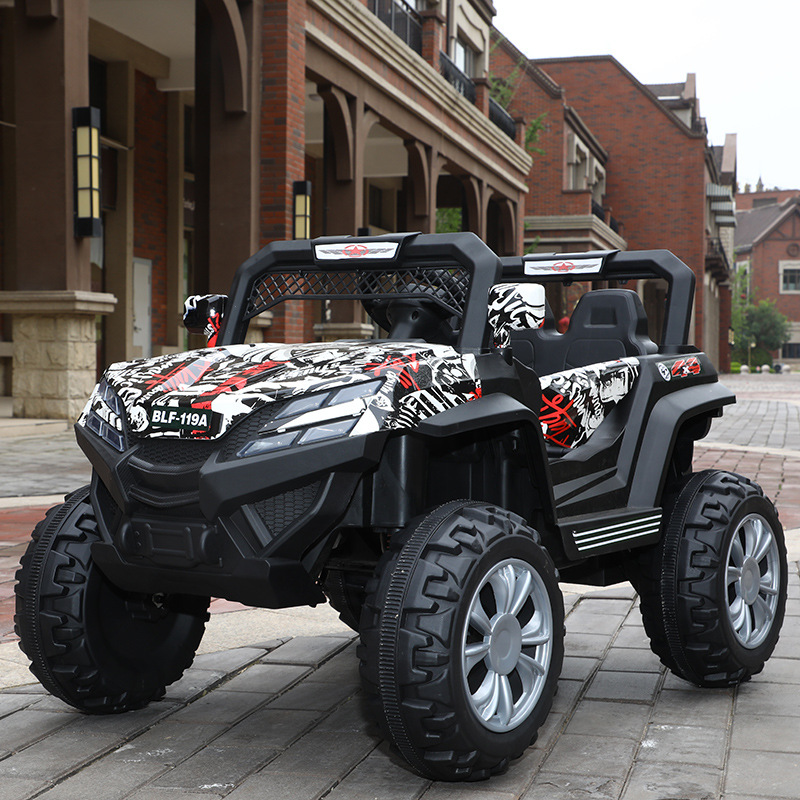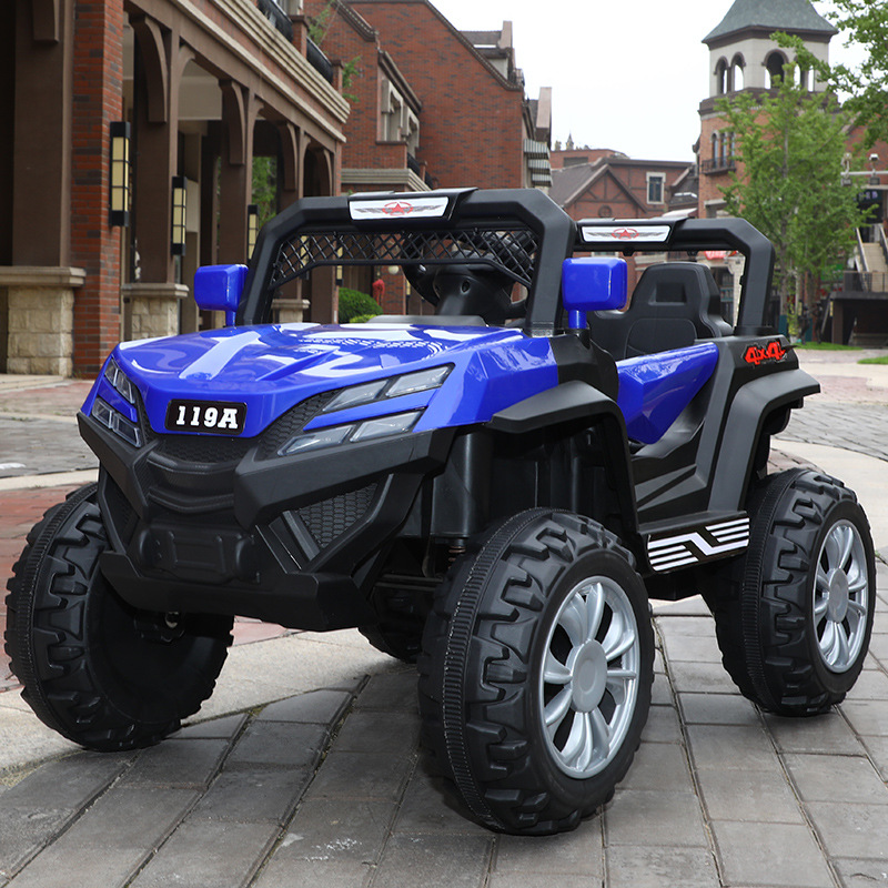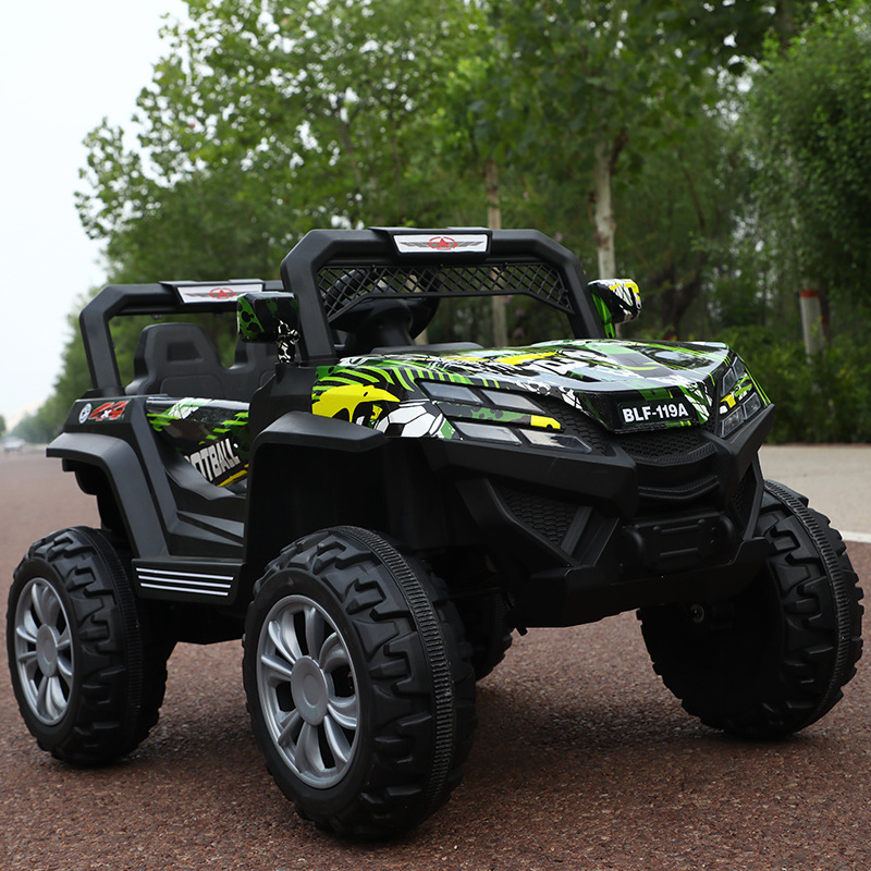 子供の四輪電気自動車は二人でオフロード車に乗ることができます。