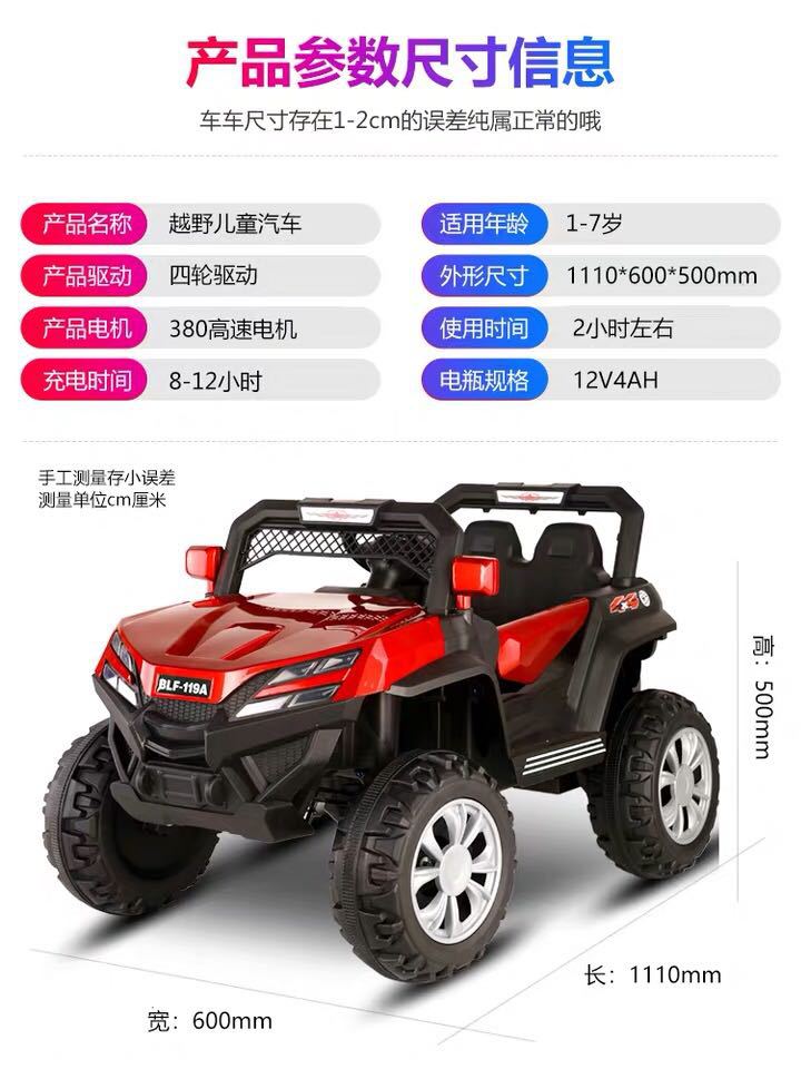 子供の電気自動車は人四駆のオフロード車に乗ることができます。