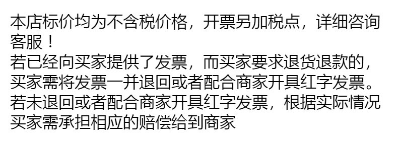 温馨提示:本店产品都是不含税价格,如需开票,请联系客服重新计算价格!!