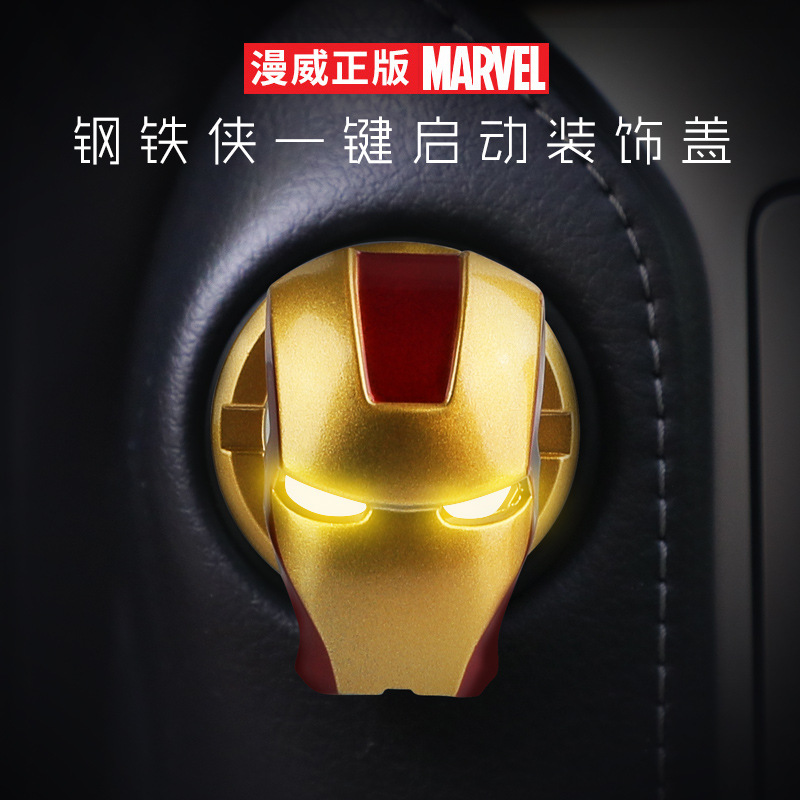 漫威双色钢铁侠一键启动装饰盖漫威汽车3D立体保护盖内饰启动圈盖