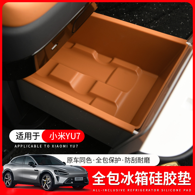 适用小米YU7冰箱硅胶垫防刮防水全包储物保护盒汽车内饰装饰用品