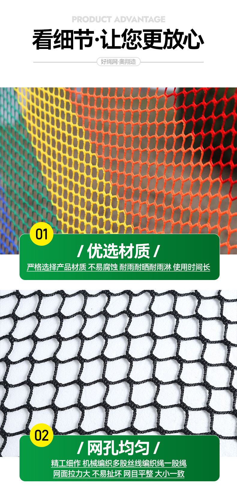 階段防護網無結網ナイロン網縄遊園地防護網トランポリン囲い網無結安全網
