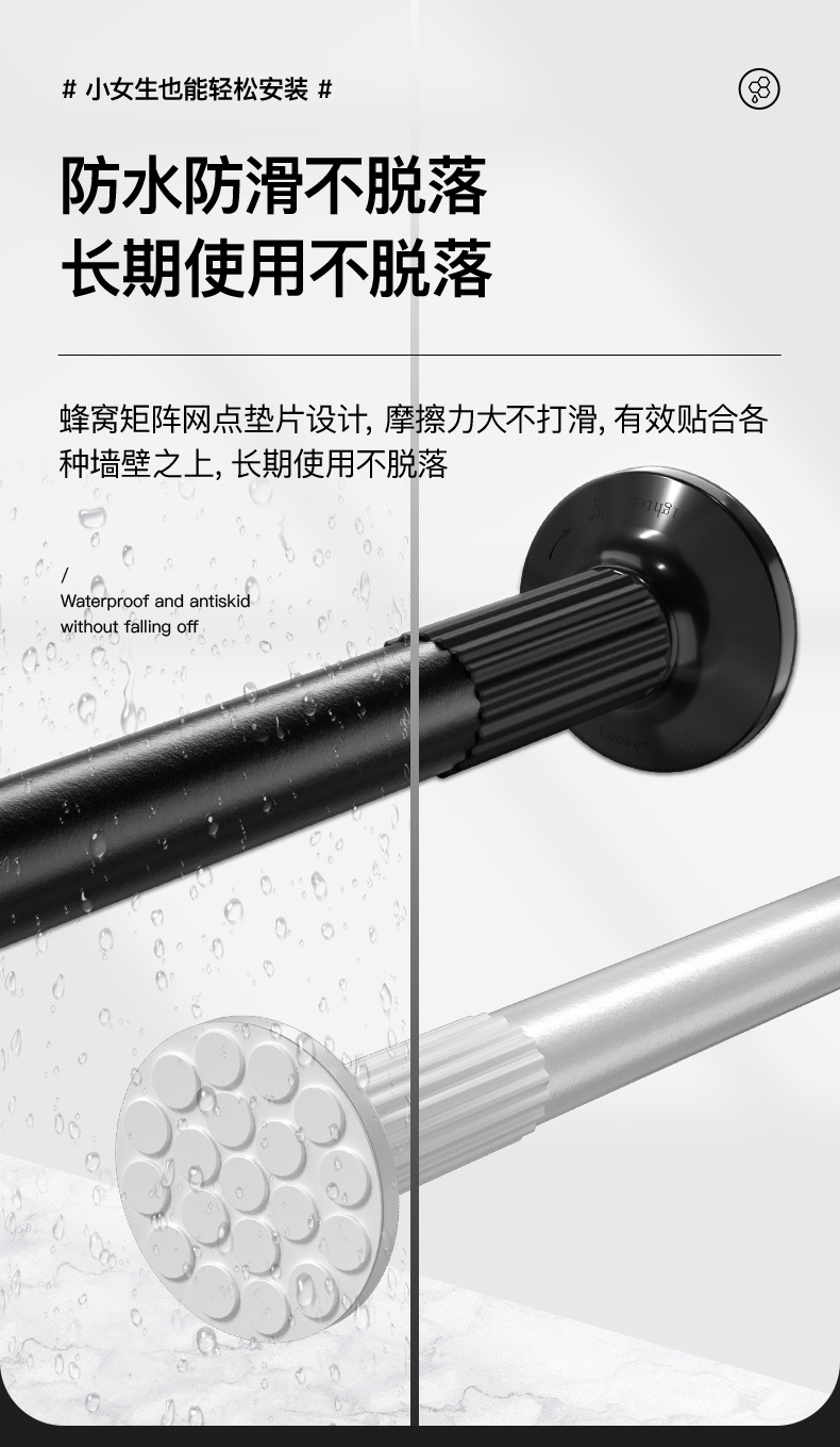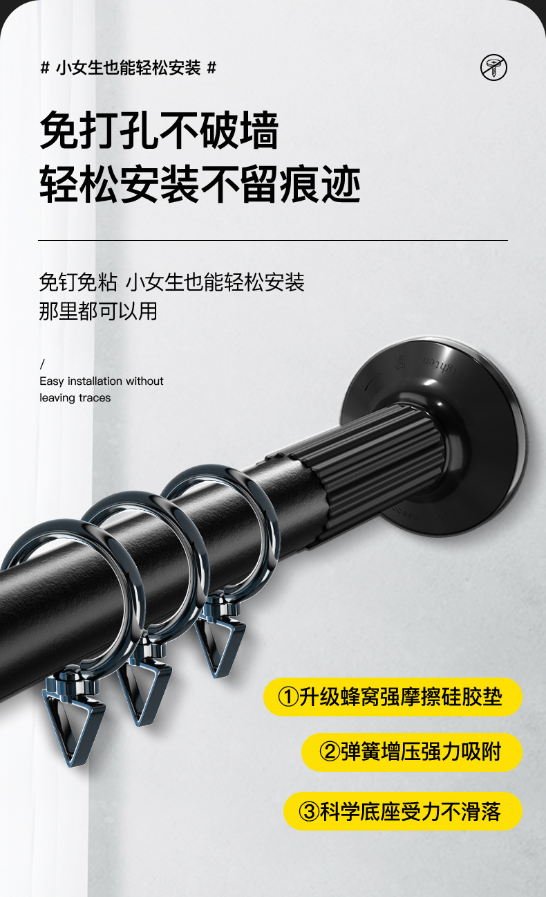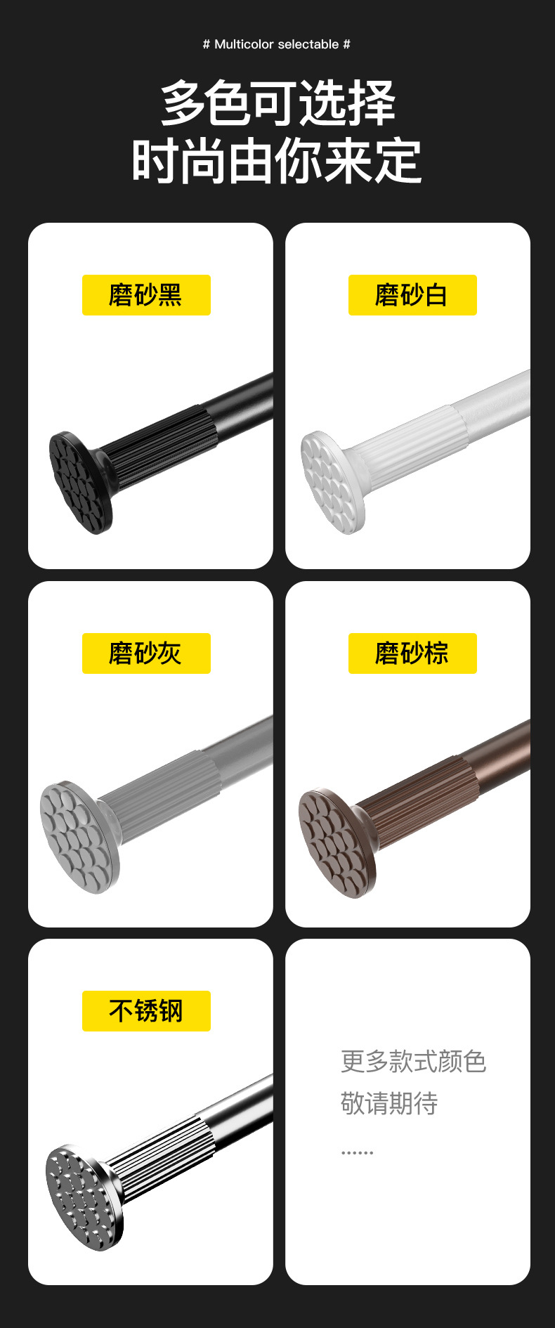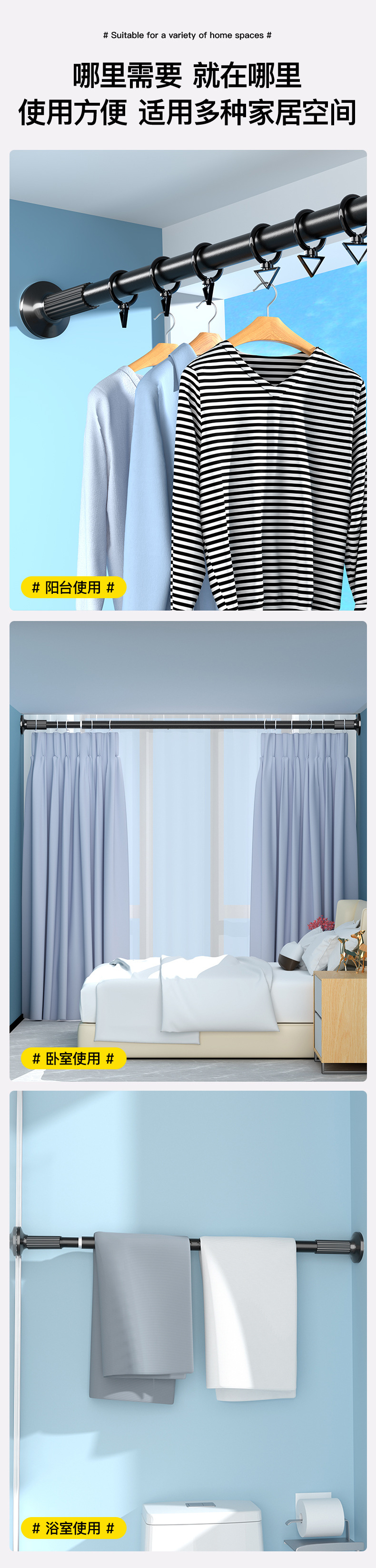 国境を越えた売れ筋バルコニーベッドルーム伸縮式物干しロッドパンチフリーカーテンロッドローマンロッドステンレス鋼黒シャワーカーテンロッド