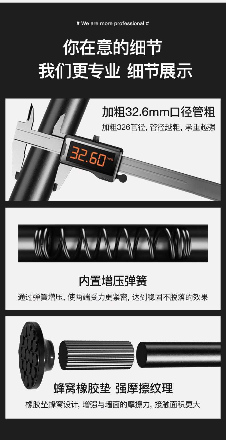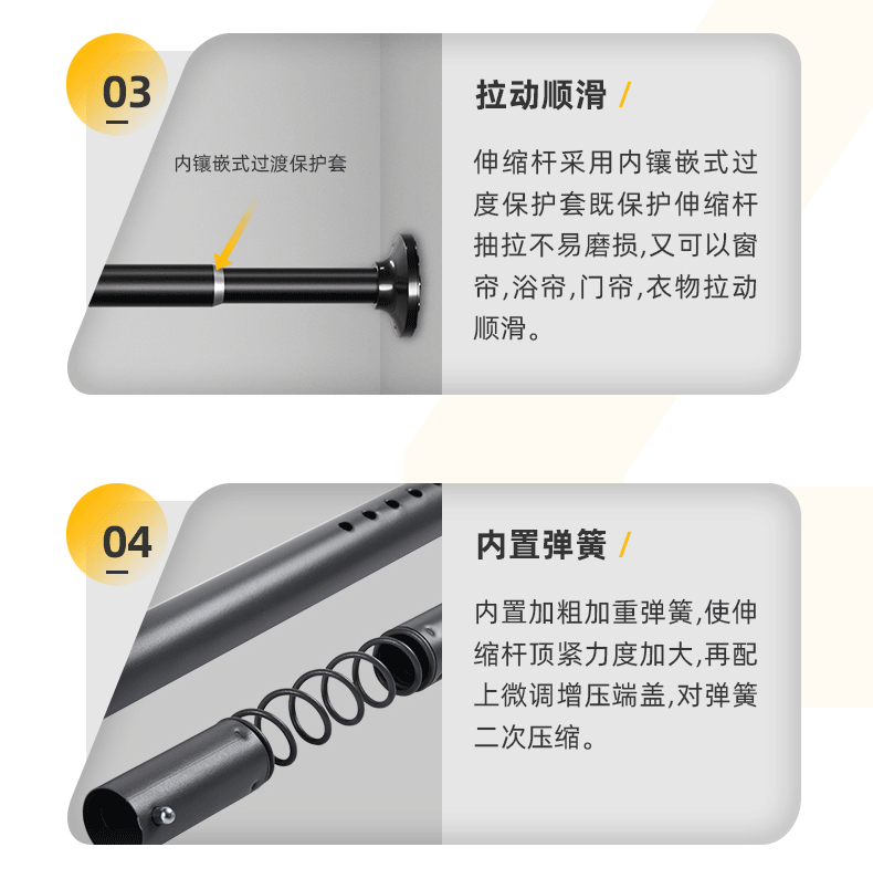 屋内物干しロッド、パンチフリー物干しロッド、シャワーカーテンロッド、バスルーム寝室物干しロッド、卸売カーテンロッド、伸縮ロッド