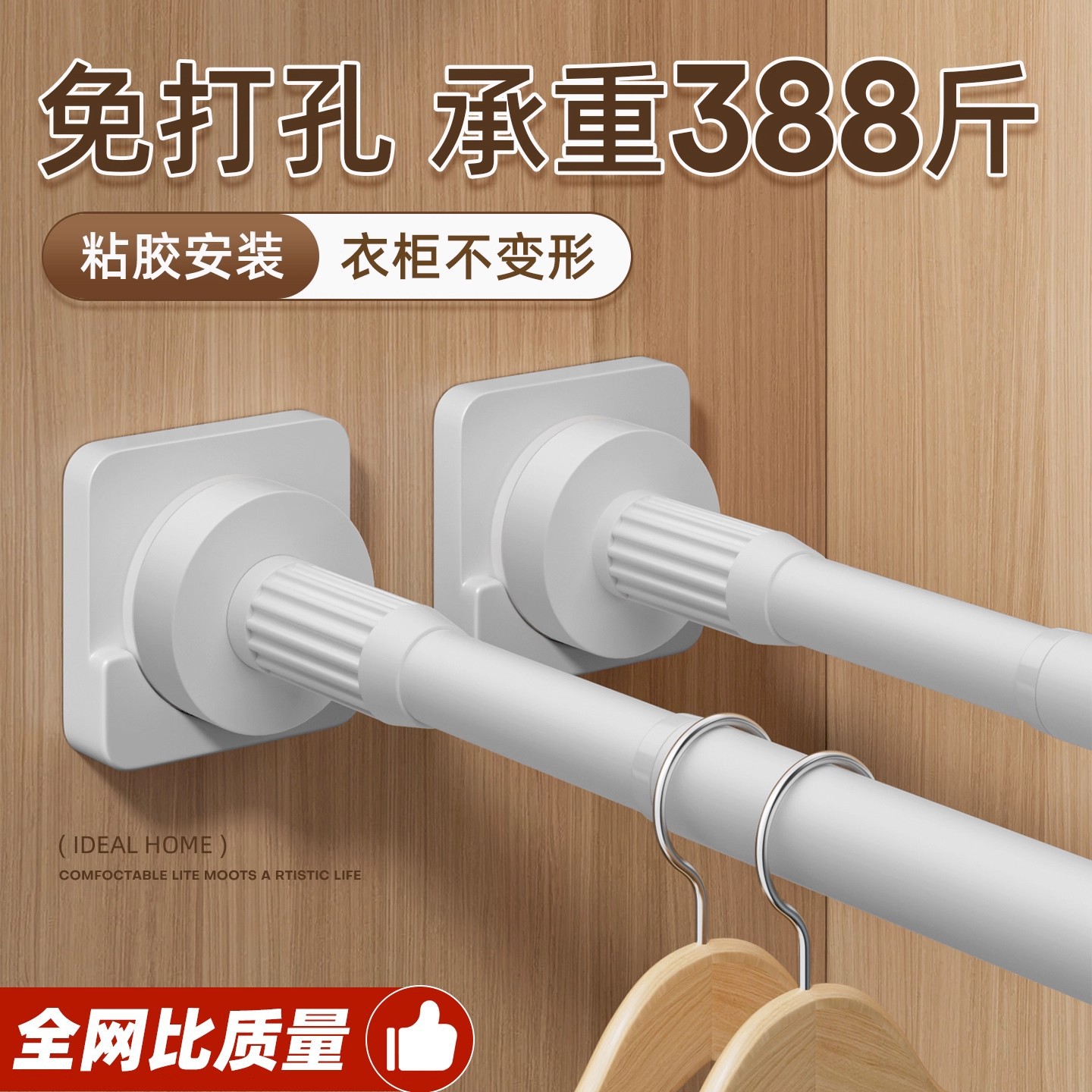 可伸缩衣柜内固定晾衣杆衣柜里的挂衣杆免打孔衣服撑杆横杆晾晒杆