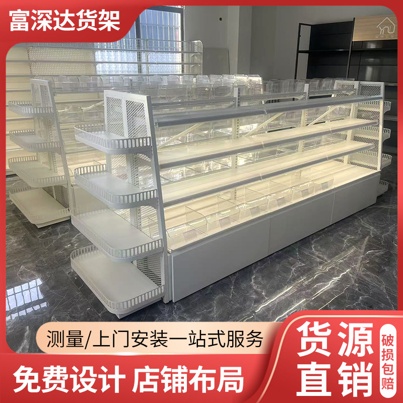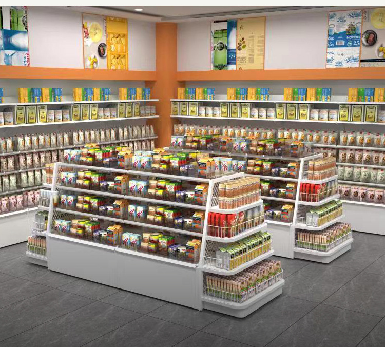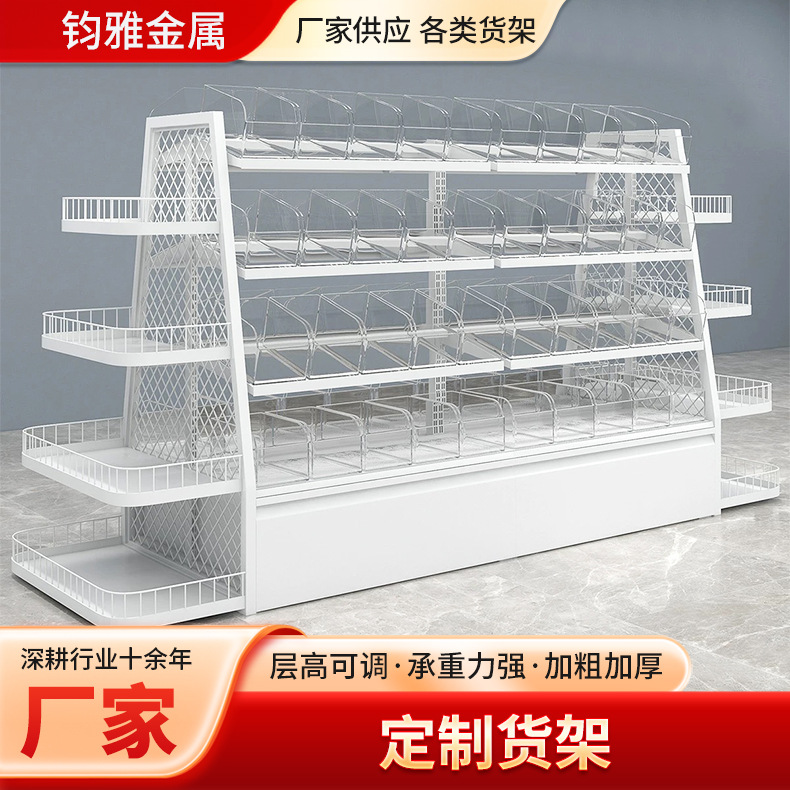 新しいスナック棚モデルルーム食品百貨店ディスプレイラック全店商品陳列ラック金属製アイランドサイドキャビネット