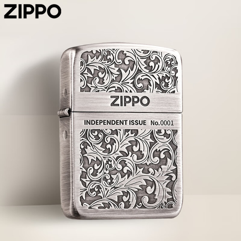 zippo打火机1941复刻古银双面唐草煤油防风情人节送男朋友礼物zip
