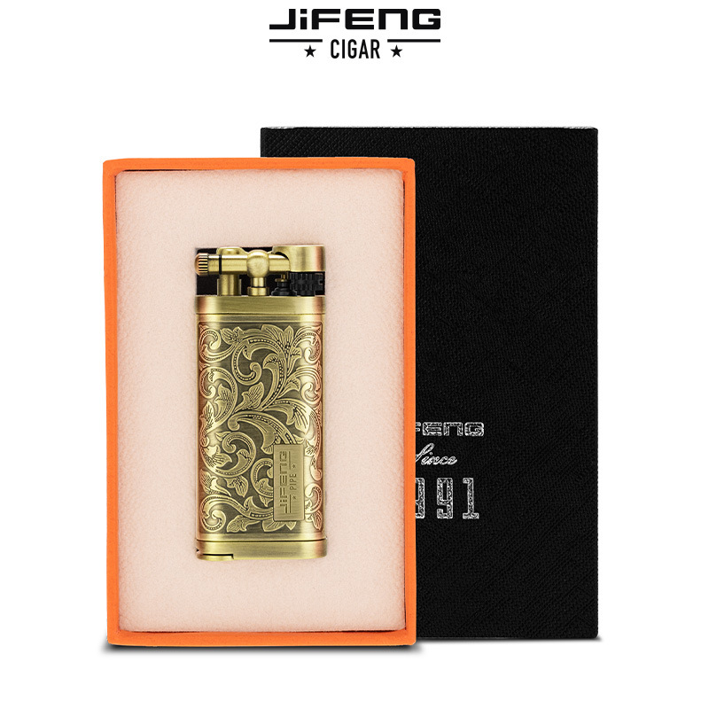 JIFENG季节风プラス大型ビンテージブロンズライター高温ブタン空気入れパイプ斜め火ライター