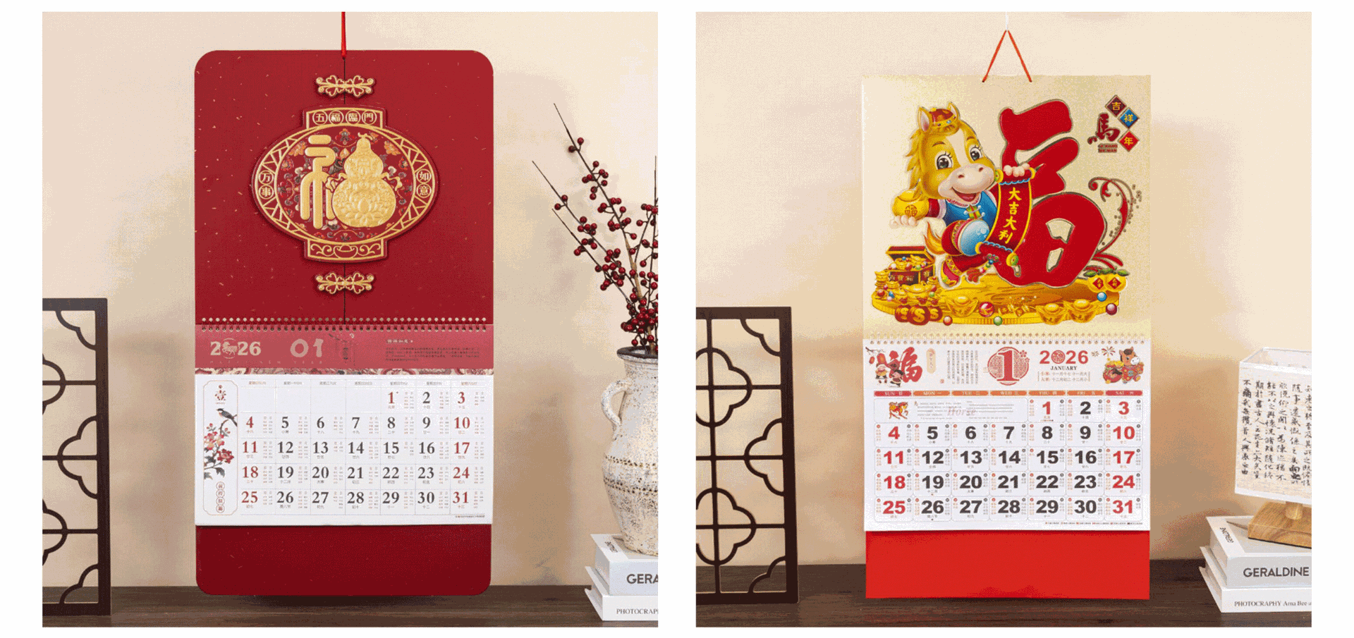 2026年 新馬年壁掛けカレンダー ポジション6 オープンホームカレンダー マンスリーカレンダー カスタマイズ企業広告 祝福タグ Tongsheng