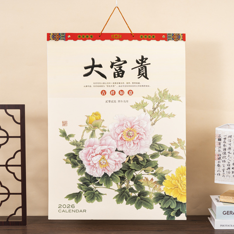 挂历2026马年大四开风景艺术月历家用挂墙中国风日历企业印刷广告
