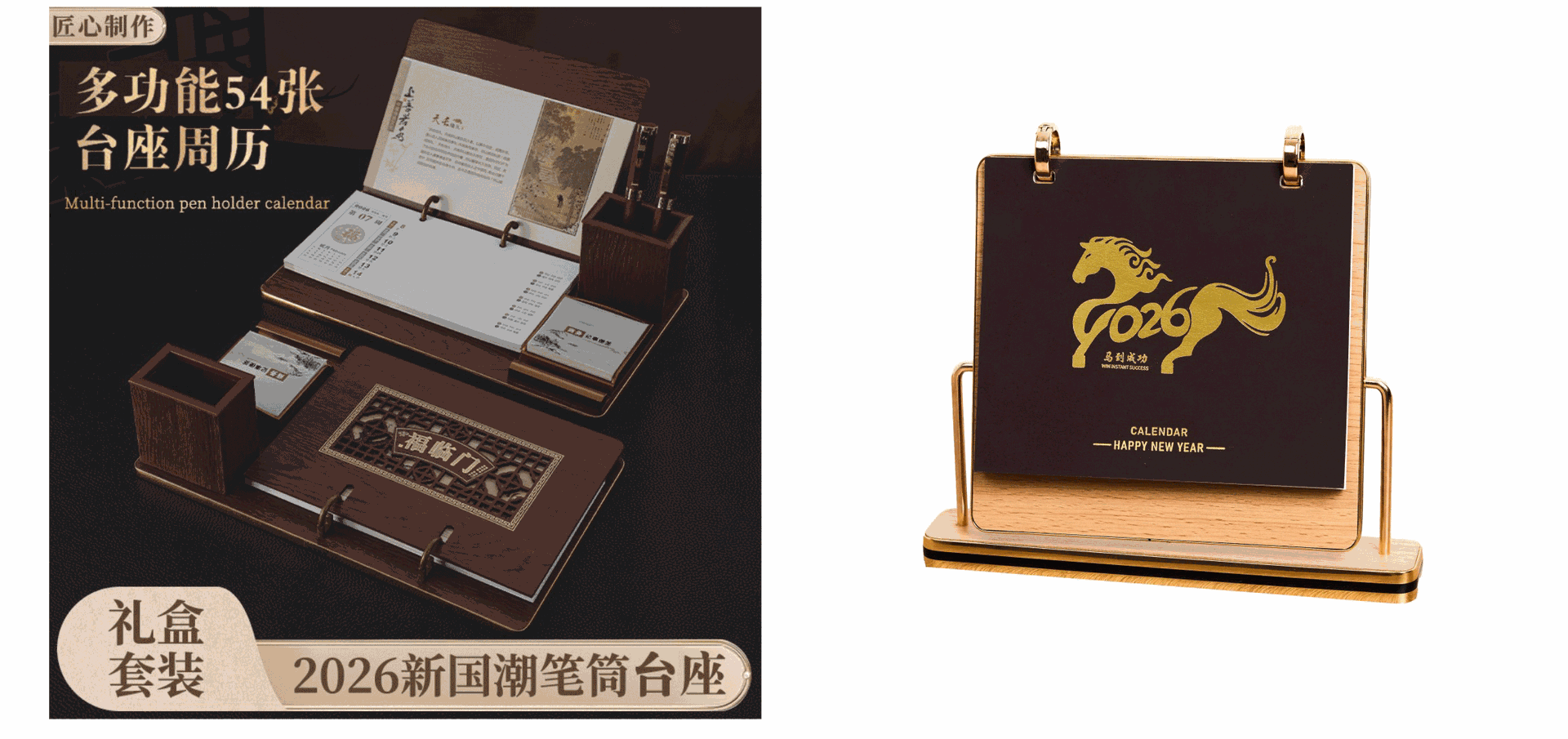 马年台历2026中国风台历定来图定做制镂空日历翻页月历金雕线圈本