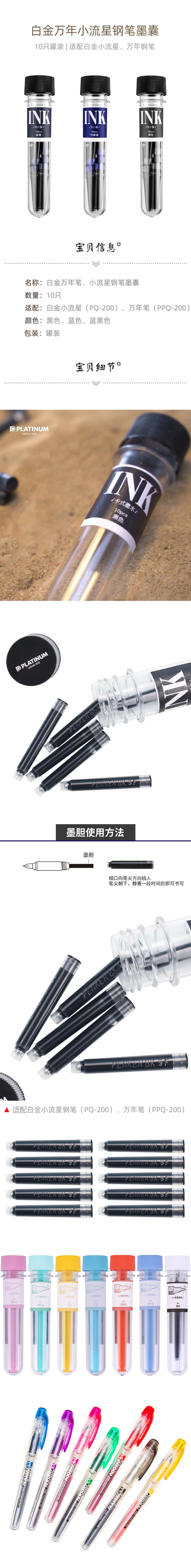 日本のプラチナの小さい流れ星の万年筆のインクの袋のPQR-100はPQ-200の現物の卸売りに適します。
