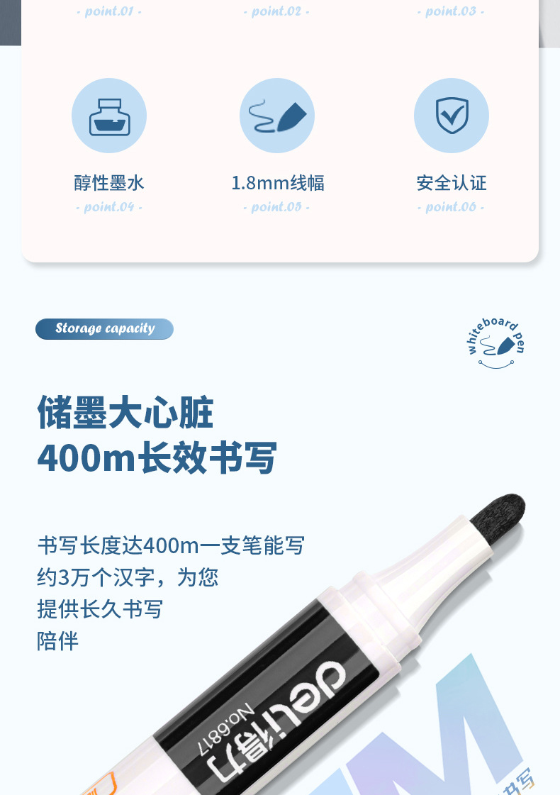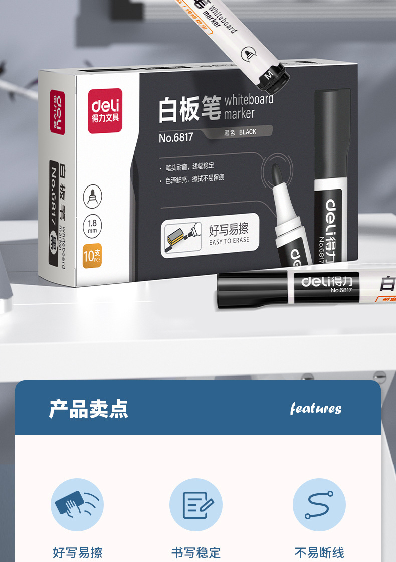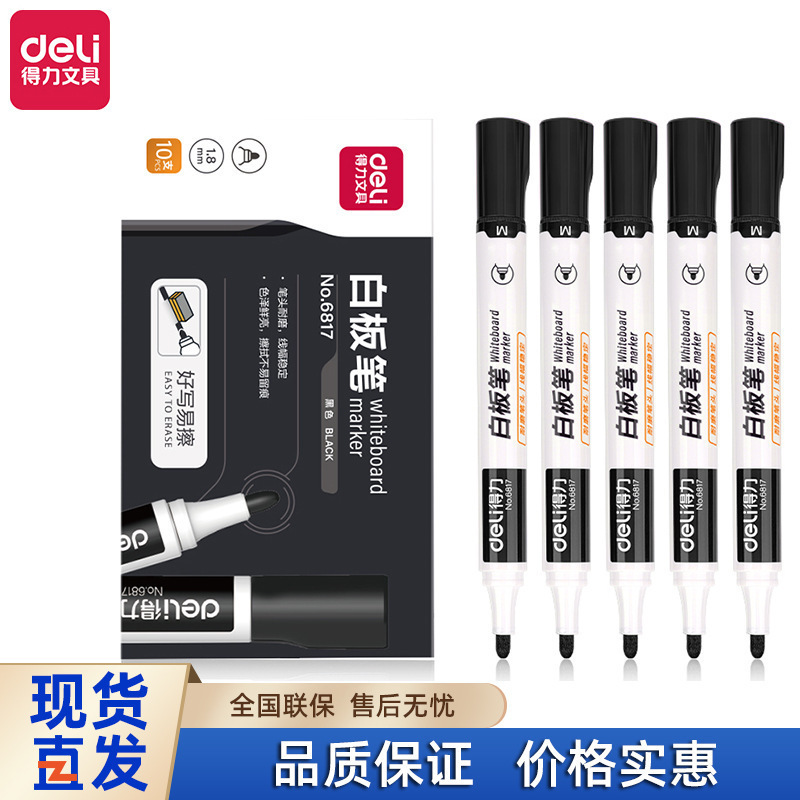 得力6817白板笔黑色红色蓝色可擦记号笔白板用办公大头笔