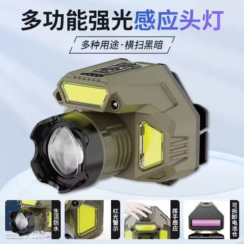 多機能ヘッドライト長い持続強い光リチウム電池鉱山ランプ屋外登山キャンプ多目的防水感応ヘッドライト