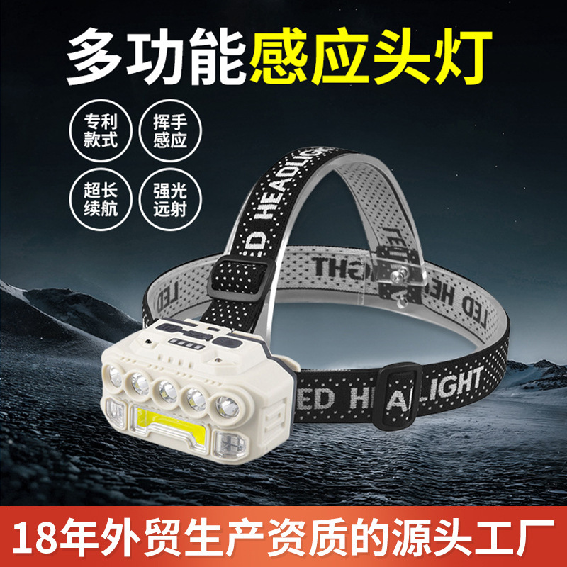 アマゾン充電ledヘッドライト強光長航続野外ランプ防水ヘッドセット式感応釣りヘッドライト卸売り