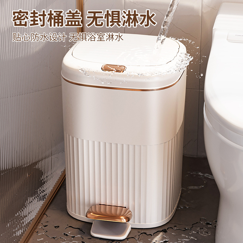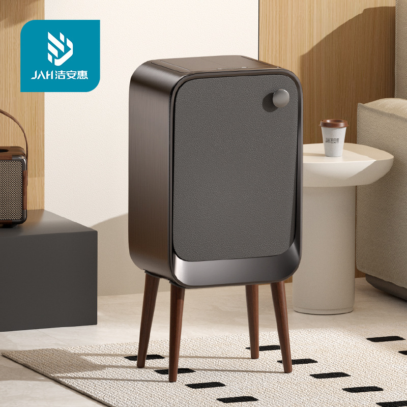 スマートセンサー両开きふた付きサイド开き高足ゴミ箱木目革纹軽豪華家庭用寝室リビングキッチン
