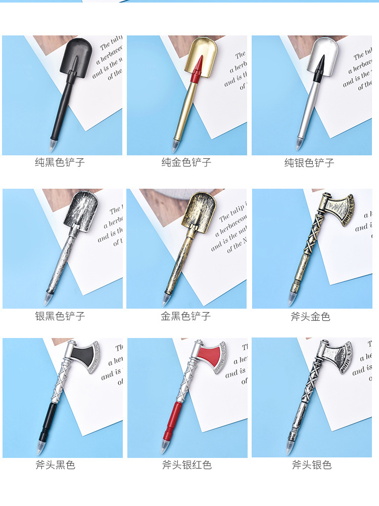 創意卸売個性武器工具ペン斧シャベルの形は多くのリアルな学生ボールペン0.5黒です。