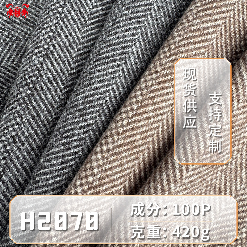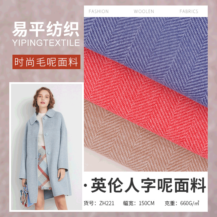 紹興柯橋の組み合わせの人の字の毛の生地の人の字の魚の骨の紋様の秋冬の粗い紡毛のコートの靴の帽子の箱