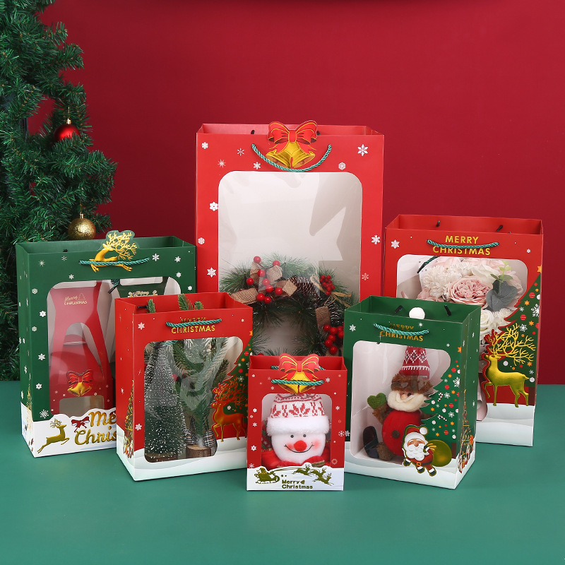 クリスマスイブの新しいウィンドウ紙袋アップルギフトバッグハンドバッグギフトバッグサンタクロースの花束ギフトバッグ