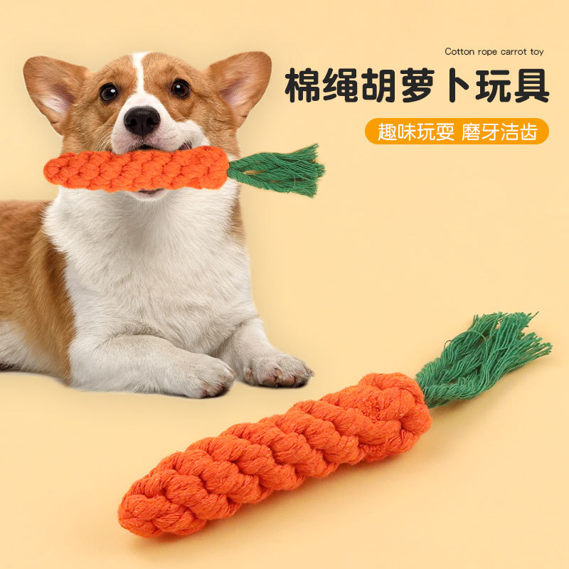 小型犬のペットの綿のひものおもちゃの犬は綿のひものニンジンの犬を編みます。