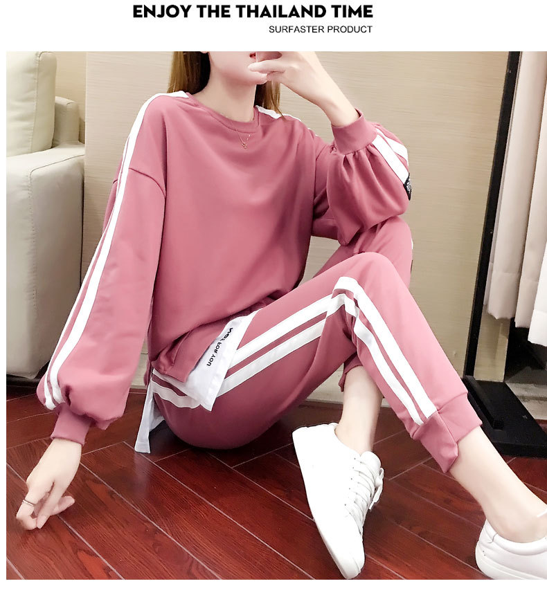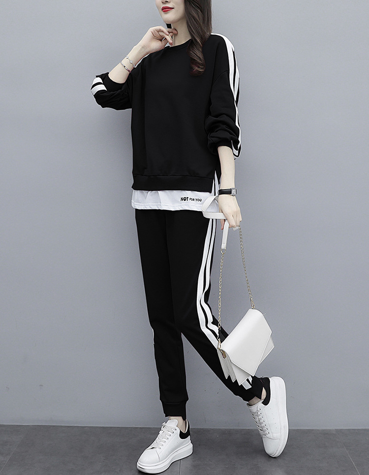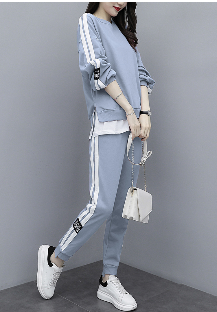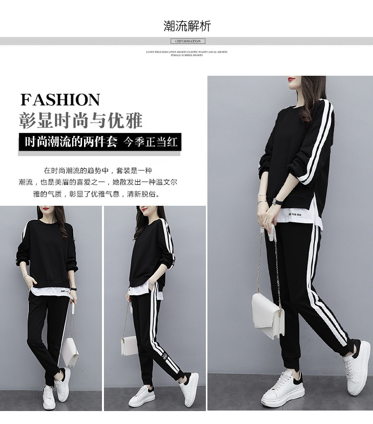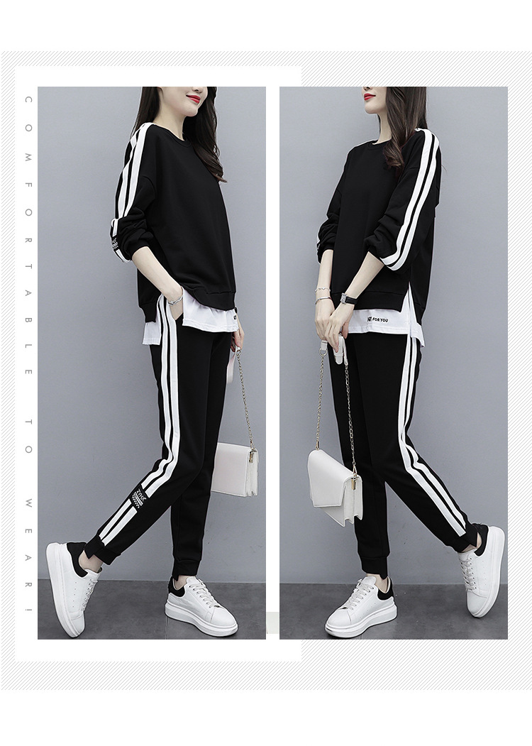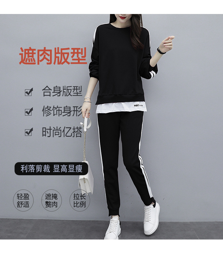 女性用カジュアルスーツ、春と秋のプラスサイズの婦人服、太った女の子、ゆったりとした痩身スポーツ女子学生ツーピースセット、怠惰なスタイル