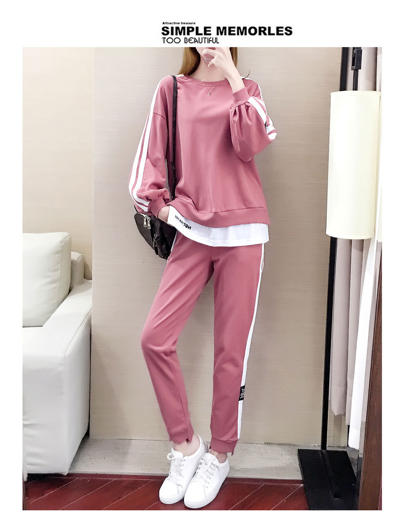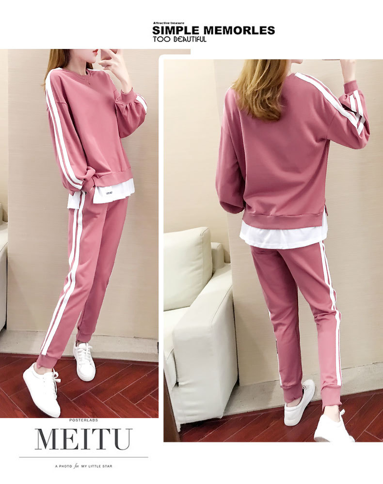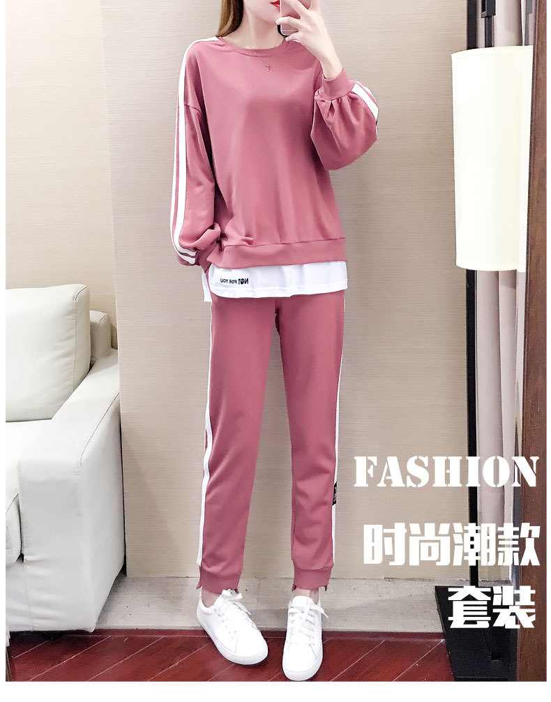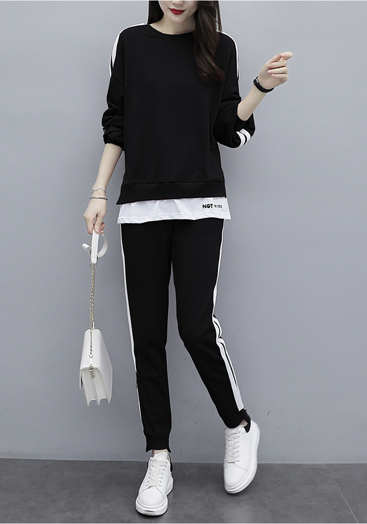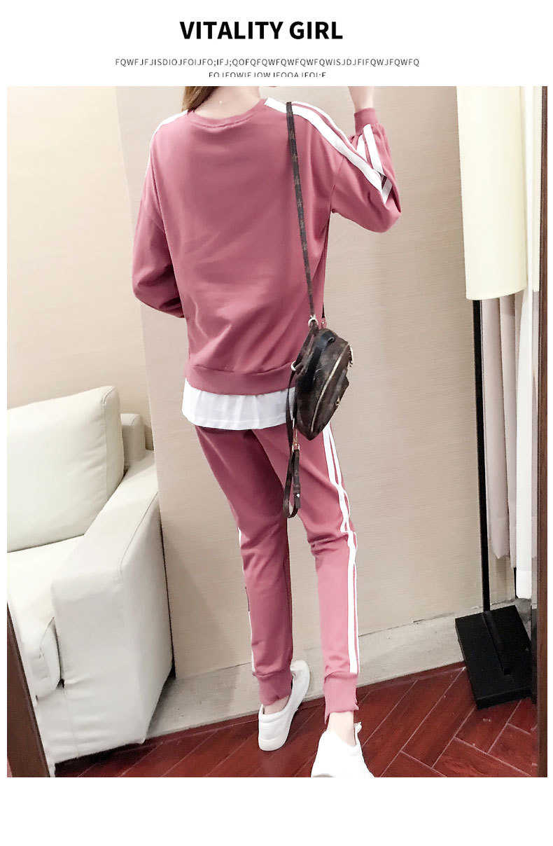 女性用カジュアルスーツ、春と秋のプラスサイズの婦人服、太った女の子、ゆったりとした痩身スポーツ女子学生ツーピースセット、怠惰なスタイル
