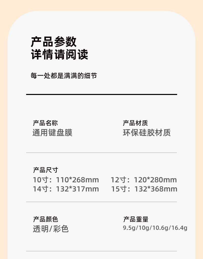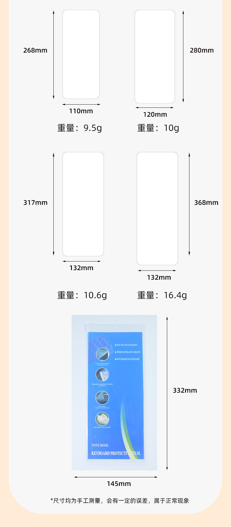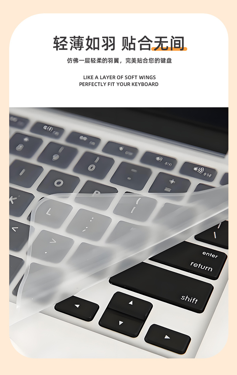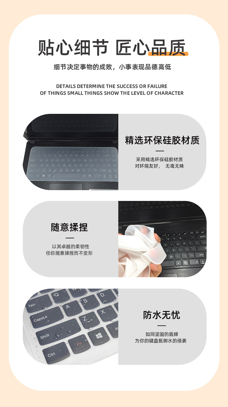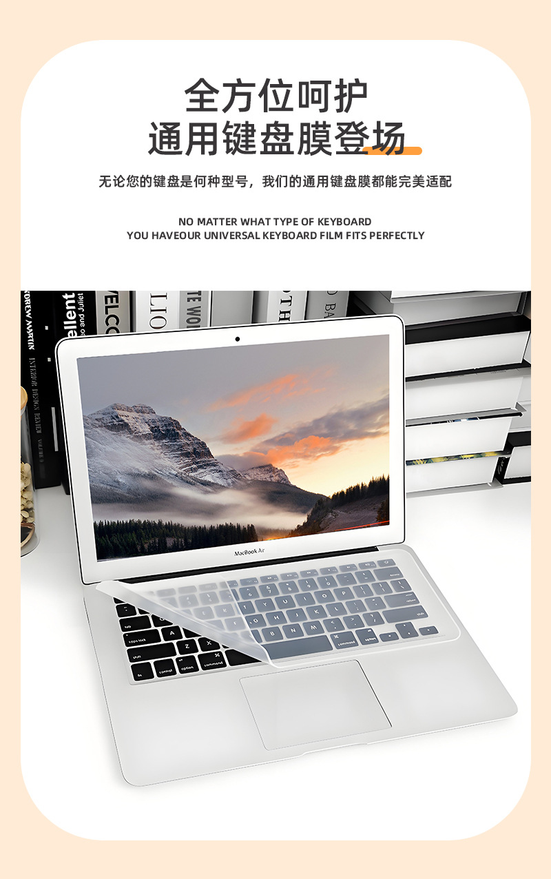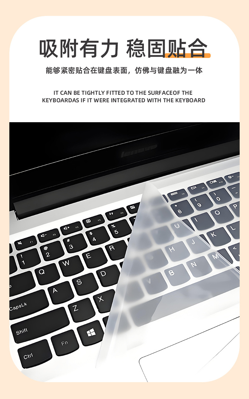 【产品特点】:笔记本键盘保护膜,采用环保硅胶材质,用的放心,用的健康;紧贴键盘,手感依旧,不影响本本闭合;防尘防水,延长爱机的使用寿命。