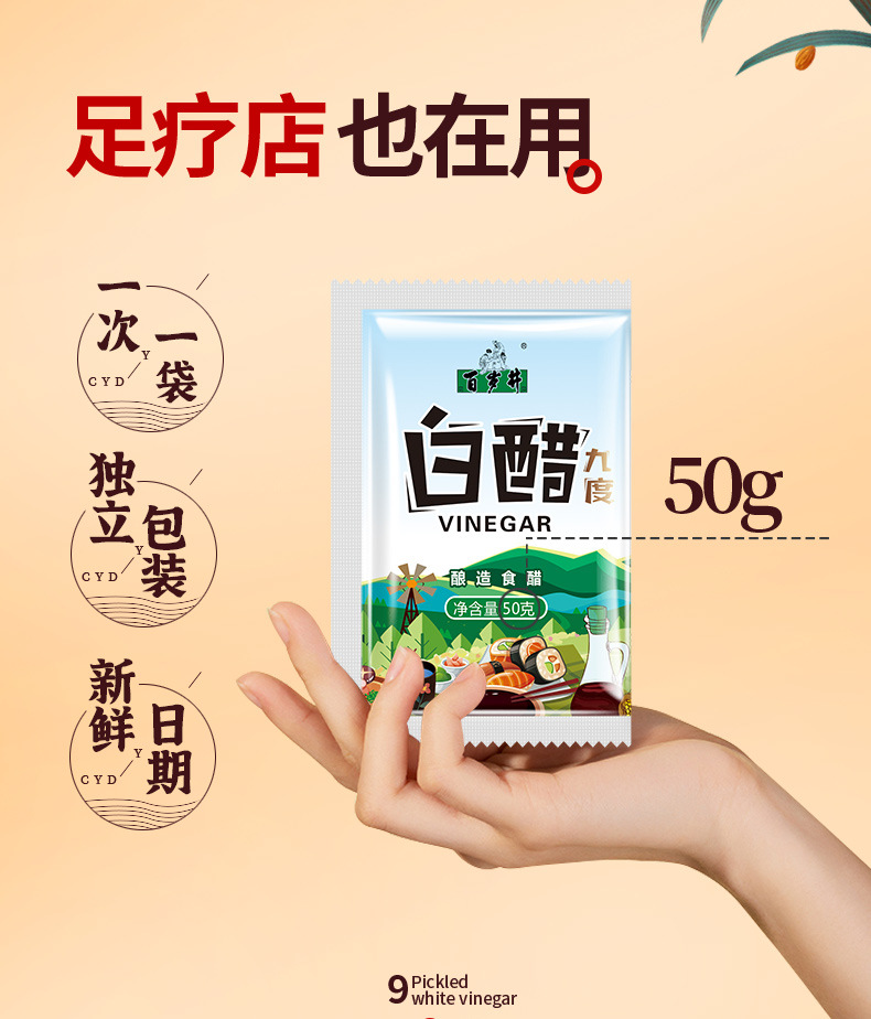 百寿井 9度白酢 50g 袋入り 食用家庭用酢で洗顔・足湯・足湯・水垢落としに