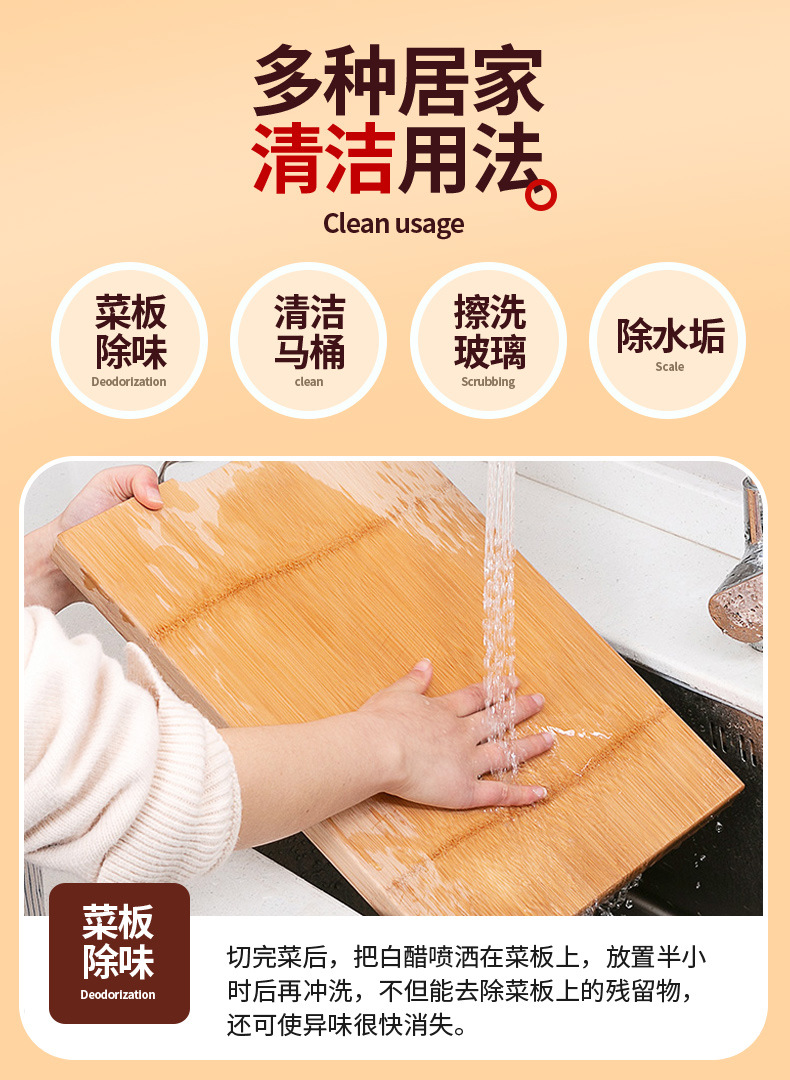 9度白酢の大きな樽は、洗顔や足の浸漬に便利で、家庭用の掃除や水垢の除去に使用でき、食用の果物酢やピクルスに使用できます。