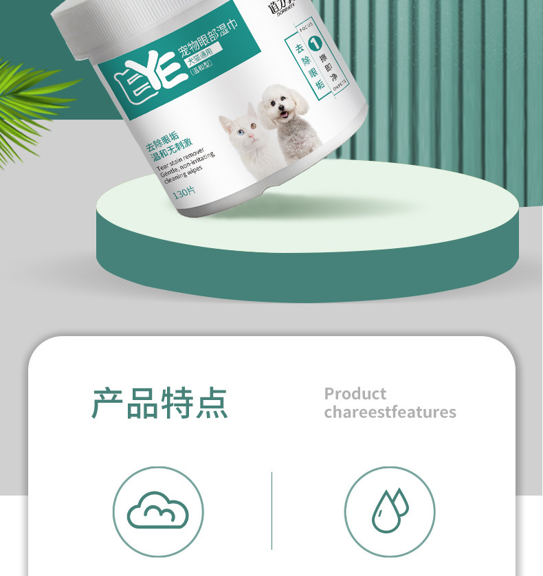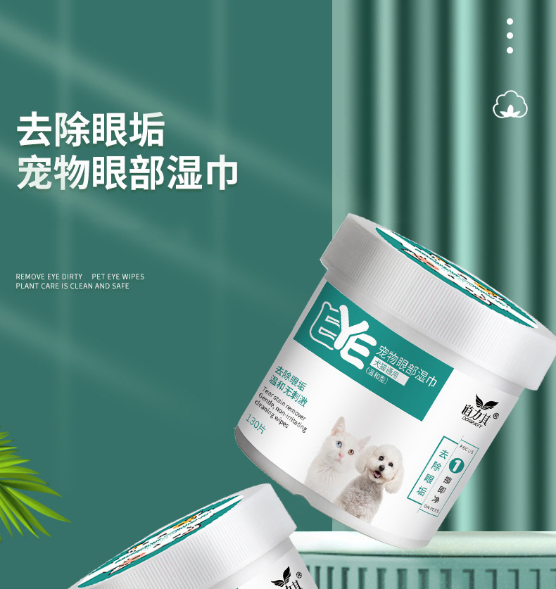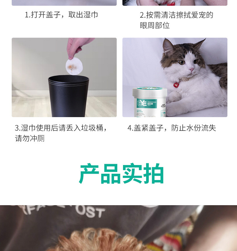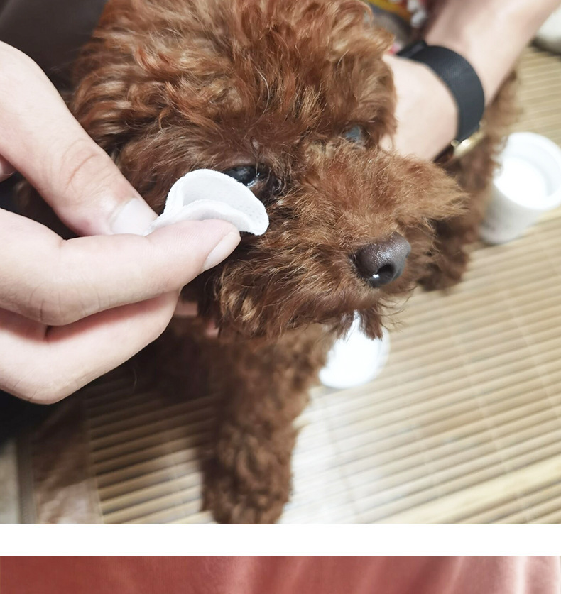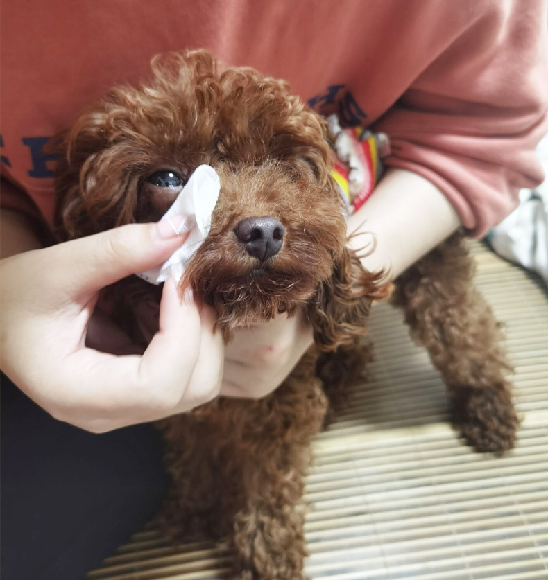 猫の犬は涙の跡に行って神器のペットのウェットティッシュを消します。